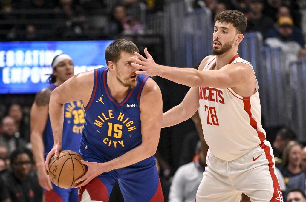 一边是火箭的核心球员在防守端遭到极大限制,另一边是掘金的核心约基奇早早在第三节拿到三双,比赛自然在第三节就呈现出了“一边倒”的趋势。